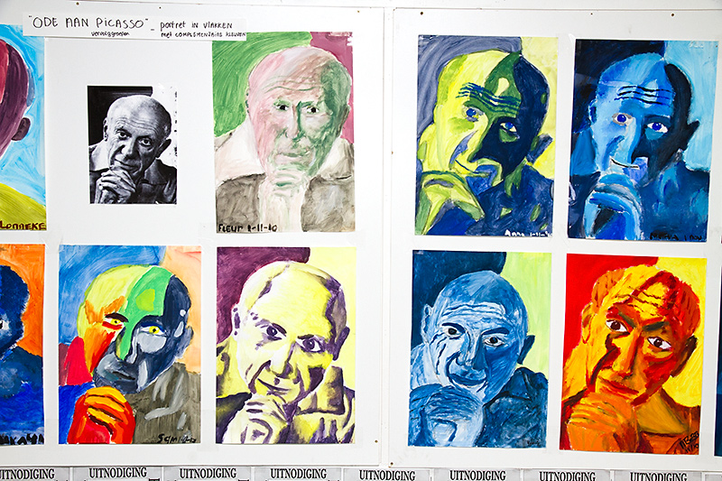 Portrait of Picasso in complementary colors. Exhibition today of students of Noor Bos. One of them is my daughter.